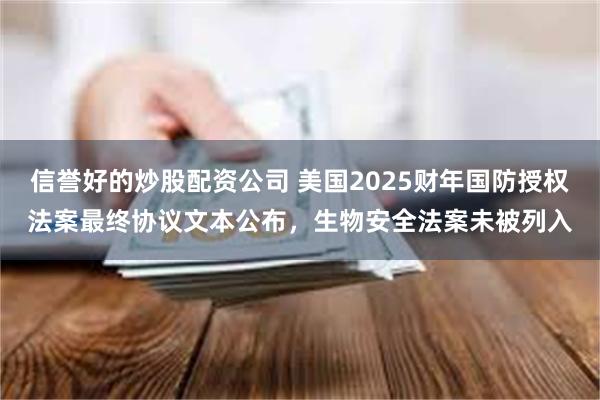 美国2025财年国防授权法案最终协议文本公布,生物安全法案未被列入